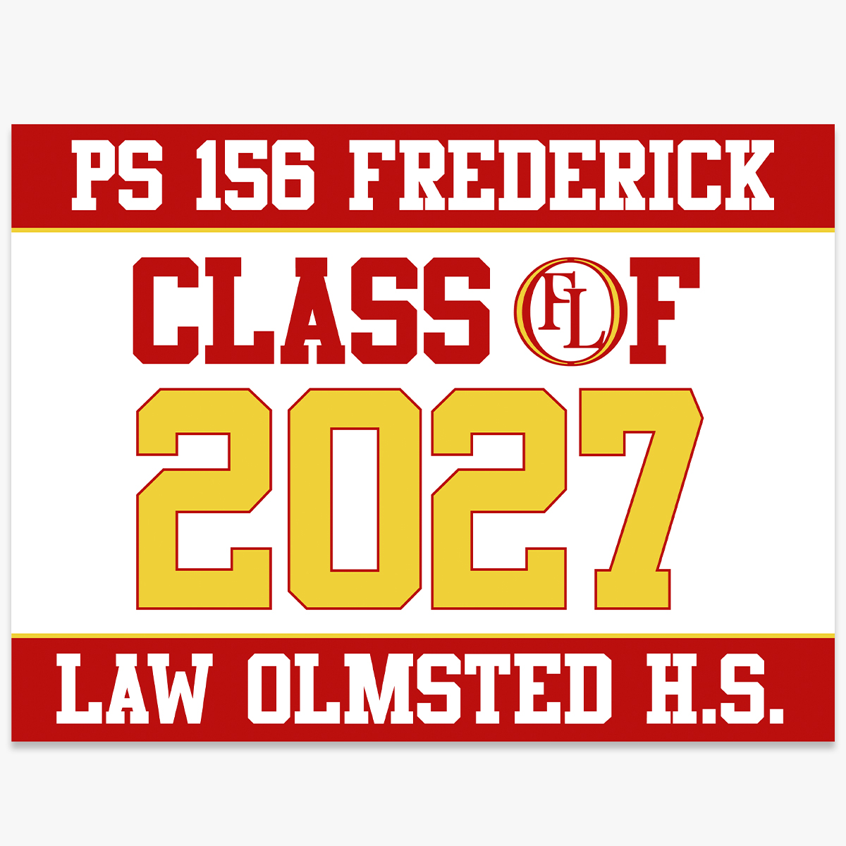 Class of 2026, 27, 28, 29 FL Olmsted lawn sign. This product supports the FL Olmsted fundraiser.